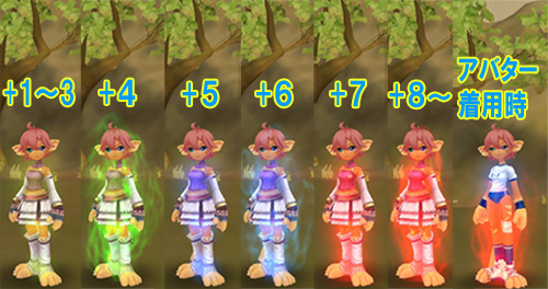強化段階により発光状態は異なり、アバターの着用時にも防具の発光効果は適用されるようになっています。