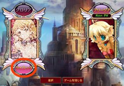 今回のアップデートでサーバー選択画面が、グロリアとライラックの統合サーバー、新サーバープリージアの2つとなります。選択時に上のグロリアを選択するとグロリアの選択画面が、下のライラックを選択するとライラックの選択画面が出るように変更されました。